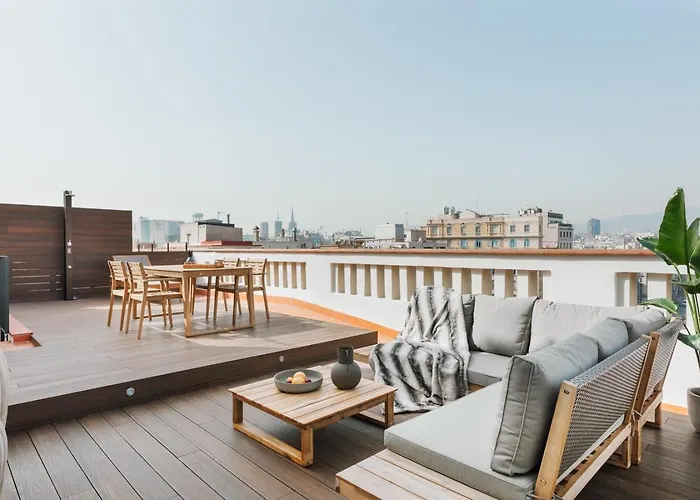 0-slaapkamer Casa Plaza Appartement Barcelona is gelegen in de El Born wijk van Barcelona op 6 minuten loopafstand van het Plaça de Sant Jaume. Dit 60 m² grote appartement heeft een terras met uitzicht op de stad